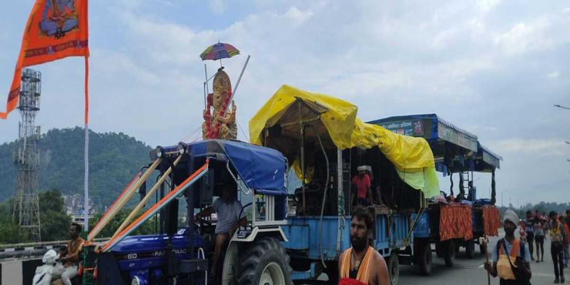 कांवड़ियों ने ट्रेक्टर में रेलगाड़ी की तहर जोड़ी तीन ट्राली