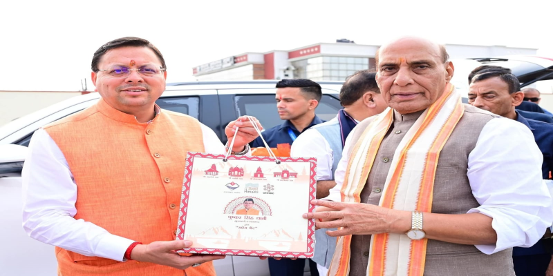 मुख्यमंत्री पुष्कर सिंह धामी ने जौलीग्रांट एयरपोर्ट पर केंद्रीय रक्षा मंत्री श्री राजनाथ सिंह के देवभूमि उत्तराखण्ड से प्रस्थान पर उन्हें चारों धामों का प्रसाद भेंट किया। इस दौरान मुख्यमंत्री ने उन्हें उत्तराखण्ड के स्थानीय उत्पादों का अम्ब्रेला ब्रांड ‘हाउस ऑफ़ हिमालयाज़’ के मिलेट्स उत्पाद भी भेंट किए।