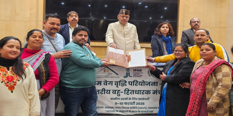 उत्तराखंड ग्राम्य विकास समिति (रीप) के अंतर्गत रूरल एंटरप्राइज एक्सीलरेशन प्रोजेक्ट (ग्रामोत्थान) द्वारा 9 एवं 10 फरवरी को देहरादून के एक निजी होटल में आयोजित दो दिवसीय राज्य स्तरीय मल्टी-स्टेकहोल्डर प्लेटफ़ॉर्म कार्यक्रम में ग्राम्य विकास मंत्री गणेश जोशी ने बतौर मुख्य अतिथि प्रतिभाग किया। कार्यक्रम के दौरान ग्राम्य विकास मंत्री गणेश जोशी ने प्रदेश के विभिन्न जनपदों से आए उत्तराखंड के विशेष एवं पारंपरिक उत्पादों की प्रदर्शनी का अवलोकन किया तथा उत्कृष्ट कार्य करने वाले क्लस्टर लेवल फेडरेशन समूहों को प्रमाण पत्र एवं स्मृति चिन्ह प्रदान कर सम्मानित किया। इस अवसर पर ग्राम्य विकास मंत्री गणेश जोशी ने कहा कि राज्य स्तरीय एमएसपी जैसे आयोजन उत्तराखंड में ग्रामीण उद्यम पारिस्थितिकी तंत्र को सशक्त बनाने, सामुदायिक उद्यमों को बाजार में बेहतर पहचान दिलाने तथा सार्वजनिक निजी सामुदायिक साझेदारी को दीर्घकालिक रूप से बढ़ावा देने में महत्वपूर्ण भूमिका निभाएंगे। उन्होंने कहा कि स्वयं सहायता समूहों और सीएलएफ के माध्यम से महिलाएं तेजी से आत्मनिर्भर बन रही हैं और लखपति दीदी अभियान अपने निर्धारित लक्ष्य से आगे बढ़ रहा है। कार्यक्रम में लगभग 30 निजी क्षेत्र की कंपनियों एवं उद्यमियों ने भाग लिया। इस दौरान परियोजना-स्तर, जिला-स्तर एवं सीएलएफ-स्तर पर निजी क्षेत्र के भागीदारों के साथ 60 से अधिक लेटर ऑफ इंटेंट पर हस्ताक्षर किए गए। कार्यक्रम के अंतर्गत आयोजित प्रदर्शनी में उत्तराखंड के विशेष एवं पारंपरिक उत्पादों को प्रदर्शित किया गया, जिनमें मंडुआ, झंगोरा जैसे मिलेट, काला सोयाबीन, तूर दाल, जीआई टैग उत्पाद बेडू (जैम एवं चटनी), मुंसियारी राजमा, ऐपन कला उत्पाद, हिमालयी घी, दून बासमती चावल, स्क्वैश, जैम, स्थानीय अचार तथा ऊनी एवं हैंडलूम उत्पाद शामिल रहे। परियोजना निदेशक झरना कमठान ने बताया कि ग्रामोत्थान सहायतित परियोजना है, जो उत्तराखण्ड सरकार के सहयोग से ग्रामीण उद्यमों के विकास हेतु अनुकूल पारिस्थितिकी तंत्र तैयार करने पर केंद्रित है। उन्होंने बताया कि परियोजना के अंतर्गत अब तक 6000 से अधिक व्यक्तिगत उद्यम एवं 500 से अधिक सामुदायिक आधारित संगठन स्तर के उद्यम स्थापित किए जा चुके हैं। यह परियोजना प्रदेश के 5.6 लाख परिवारों और 60 हजार स्वयं सहायता समूहों तक अपनी पहुंच बना रही है। कार्यक्रम में उपायुक्त ग्राम्य विकास नरेश कुमार, वित्त नियंत्रक भूपेश काण्डपाल, उप निदेशक महेंद्र सिंह यादव सहित विभागीय अधिकारी, निजी क्षेत्र के प्रतिनिधि एवं प्रदेश के 13 जनपदों से 26 सीएलएफ के प्रतिनिधि, सभी जनपदों के जिला प्रबंधक एवं सहायक प्रबंधक उपस्थित रहे।